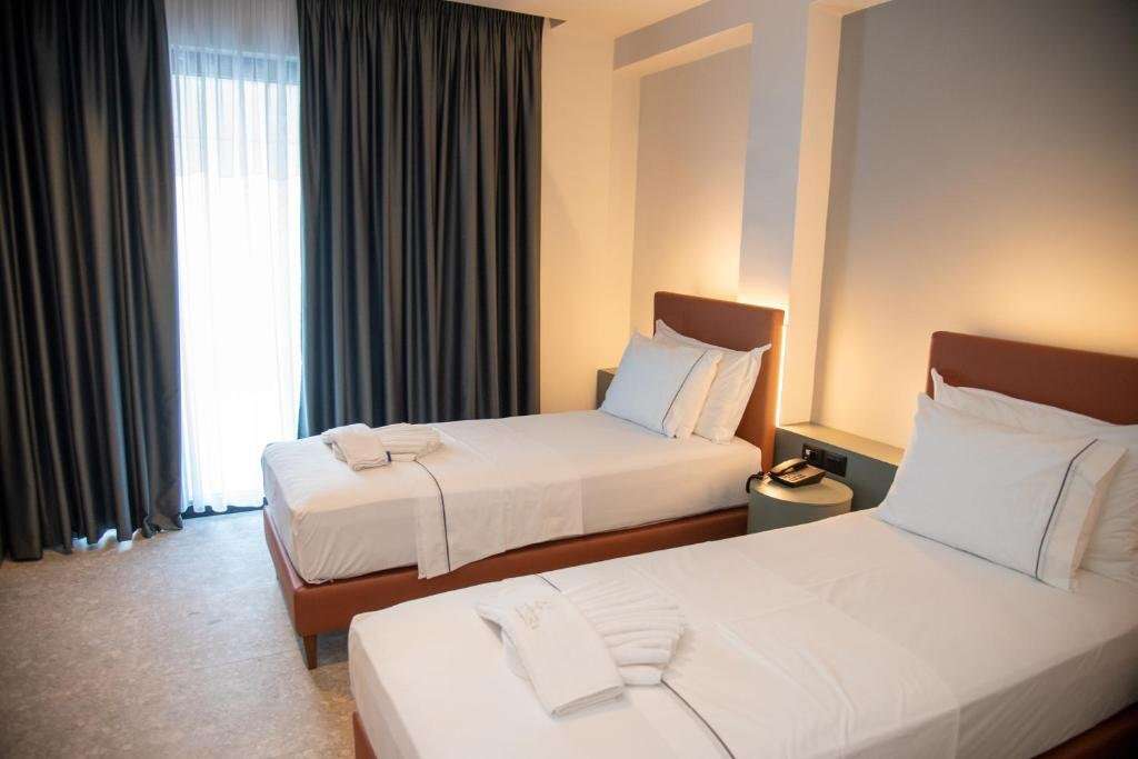A 4*-os hotel 2007-ben épült, és 2016-ban felújították. A hotel tágas lobbyval és recepcióval rendelkezik, étterme albán és mediterrán ételeket kínál, bárja pedig tengerre néző terasszal várja a vendégeket. A recepción széf áll rendelkezésre, az egész hotel területén ingyenes WiFi érhető el, valamint a vendégek a medencét is használhatják, ahol napágyak és napernyők ingyenesen biztosítottak. Legújabb épületét, ahol szobáink találhatók, 2024-ben adták át. A két épület közvetlenül egymás mellett helyezkedik el, és a szolgáltatások minden vendég számára egységesen elérhetők.