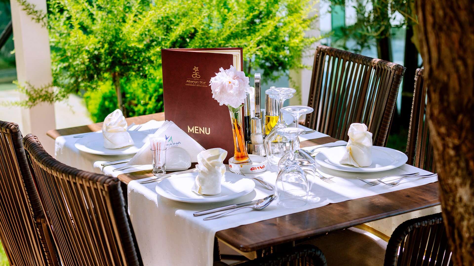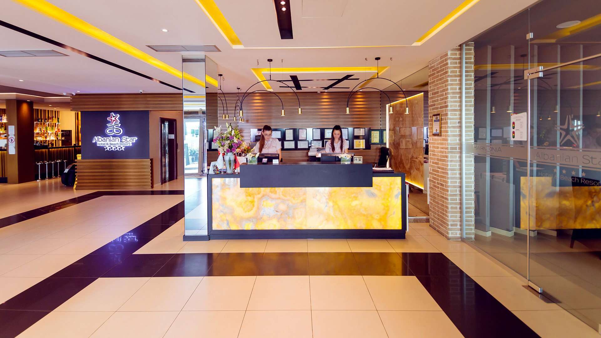 A 4 csillagos, jól karbantartott szálloda egy épületben helyezkedik el, 9 emeletével és 2 lifttel rendelkezik, összesen 130 szobával. A tágas lobby mellett 24 órás recepció szolgálja a vendégeket. A szállodában két étterem található: egy svédasztalos, valamint egy mediterrán és albán a’la carte konyhát kínáló étterem, továbbá bár is rendelkezésre áll. A recepción széf biztosított, és a hotel ingyenes Wi-Fi-t kínál. Ezen kívül 70 fős konferenciaterem, tengerre néző terasz is elérhető. Térítés ellenében orvosi ügyelet vehető igénybe, a szálloda Visa és MasterCard hitelkártyákat fogad el.