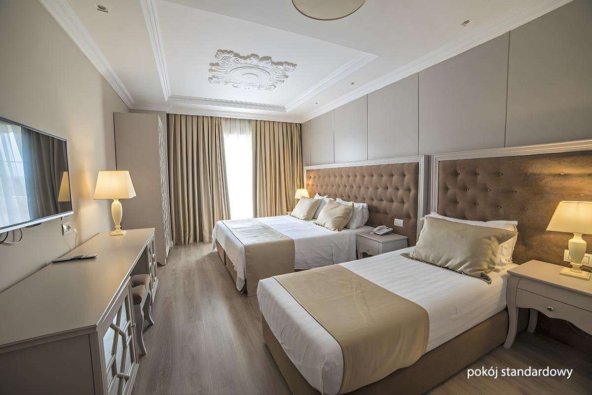 Deluxe kétágyas szoba (25 m²), egyénileg szabályozható légkondicionálás, fürdőszoba (kád/szuhanyzó, wc, hajszárító), vezetéknélküli internet, TV, telefon, hűtőszekrény, széf, erkély asztallal és székekkel, kertre vagy medencére nézőek. Ingyenes kiságy 2 év alatti gyermek számára, érkezés előtt kérésre.