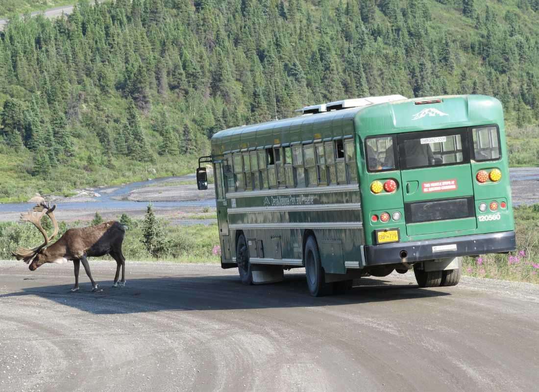 A Denali előterének tajgáját és tundráját is óriások uralják, hiszen a világon sehol nem figyelhető meg nagyobb tömegben grizzly medve vagy jávorszarvas, mint itt. A nemzeti park területén 650 arktikus növényfajt tartanak számon, és az óvatos természetjárók a fehér kosok mellett hiúzokat, sőt rozsomákokat is fényképezhetnek. A nemzeti park belső útvonalain csak helyi buszok közlekedhetnek, számos megállóval a leglátványosabb pontokon. Reggeli indulás a nemzeti park belső területeire, busszal. „Vadászat fényképezővel” a legszebb kiszálló-pontoknál. A Pretty Rock hegyomlás következtében folyamatosan útépítés zajlik. A buszról leszállva a Polychrome Overlook kilátópont felé tervezzük sétánkat, illetve a rangerek tanácsai alapján olyan kilátót keresünk, ahonnan esetleg látszódik a Denali. (A békés alsó világból nehéz elhinni, hogy a Denalin 5.800 m magasság felett nem ritkák a –70°C fokos hidegek és a 220-250 km/h szélviharok sem.) Délutáni utazás kifelé, a Toklat folyó völgyében, karibu megfigyeléssel. Kijutás a parkból a késő délutáni órákban. Szabadidő és vásárlási lehetőség a park bejáratának „vásárvárosában”.