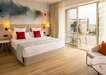 My Favorite Club DBL Front Sea view: kb. 35 m² alapterületű szoba- 1 king-size ággyal vagy 2 külön ággyal és kanapéággyal, a szálloda legfelső emeletein található.