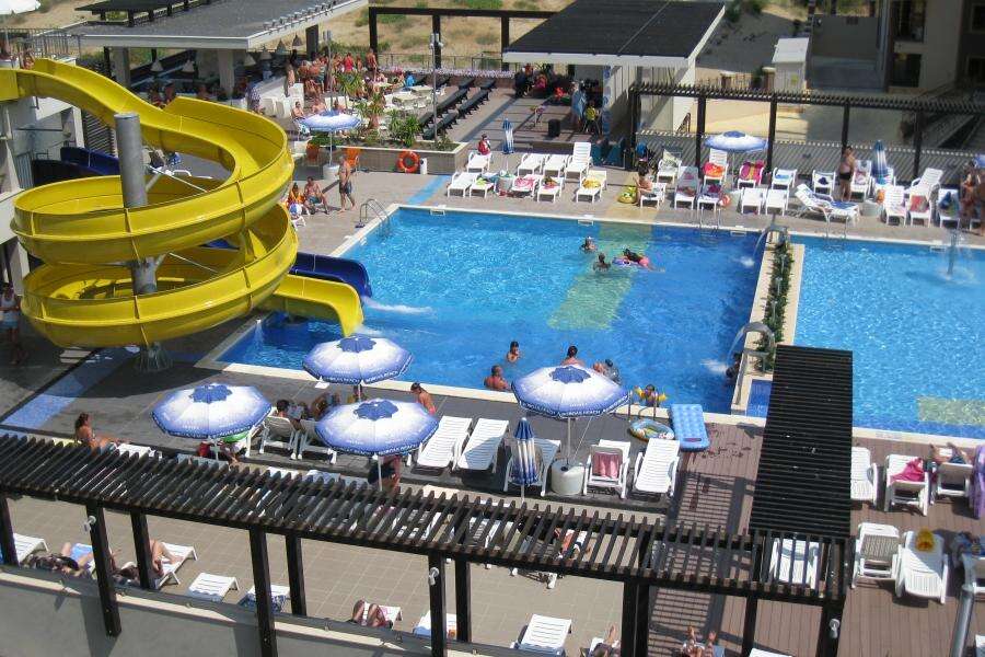 Kültéri medence, gyermekmedence, csúszdák, játszótér, animációs programok és fitneszterem áll rendelkezésre. Térítés ellenében biliárd, szauna, masszázs és vízi sportok érhetőek el.