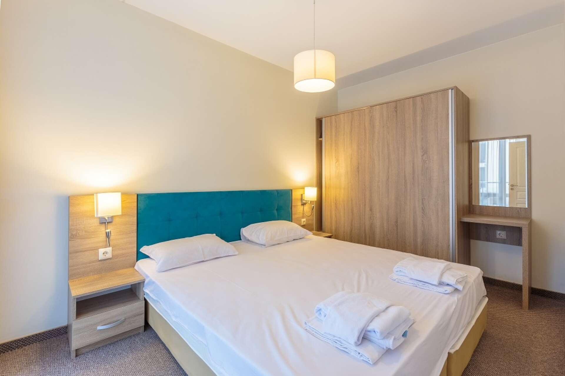 Két hálószobás apartman kb. 60-70 m² (min. 4+0/max. 4+2/5+0), két külön hálószoba (az egyik king size ággyal, a másik két egyszemélyes ággyal), nappali kihúzható kanapéval.