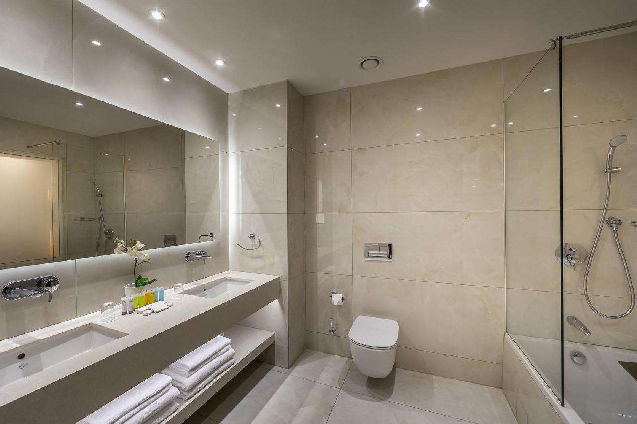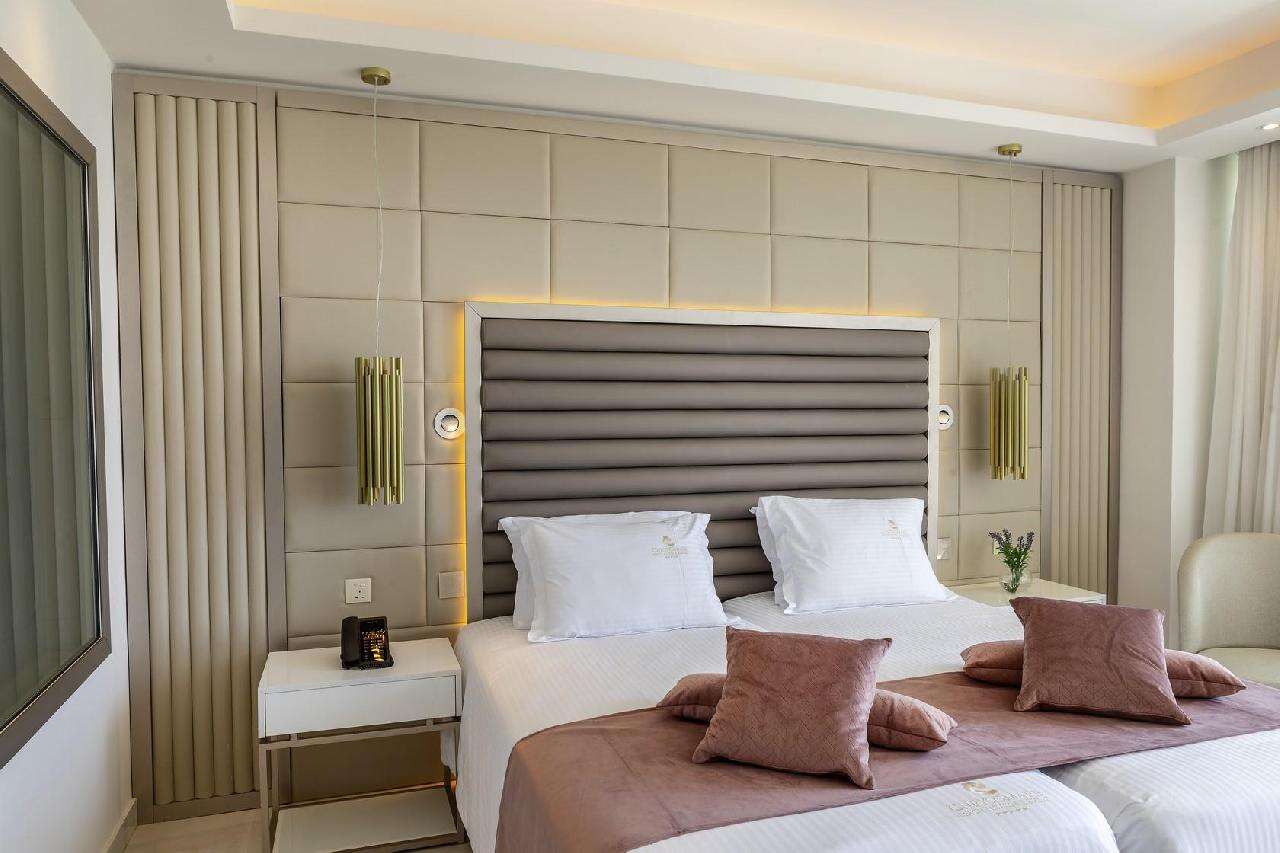 Szobák: minden szoba elegáns és modern berendezéssel, világos színvilággal, egy hálószobás (~33 m2) légkondicionált, fürdőszobás, hajszárítóval, síkképernyős tv-vel, minibárral, vízforralóval (tea és kávéfőzési lehetőség), telefonnal és széffel felszerelt. A családi szobák hasonlóan berendezettek, alapterületük nagyobb (~40 m2), kényelmes elhelyezést biztosítanak 2 felnőtt és 2 gyerek számára (emeletes ágyon). A szobákhoz erkély tartozik szárazföldre, oldal tengerre , tengerre néző vagy front tengerre néző kilátással.