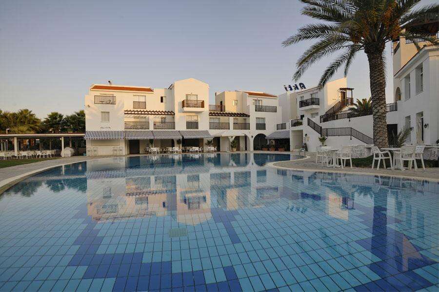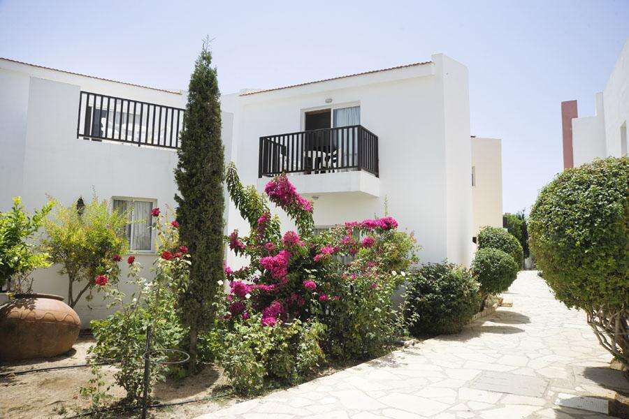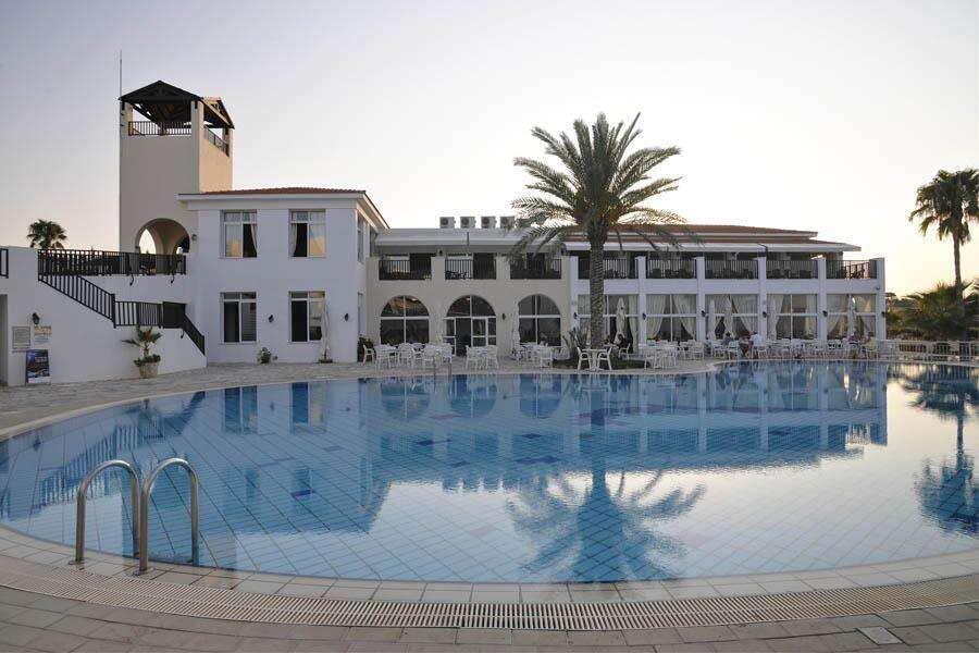 Paphos üdülőövezeti, Chloraka elnevezésű részén, közvetlenül a sziklás tengerparton épült több tucat bungaló épületből álló, kettőszázharminckettő szobás görögfalu jellegű szálláshely.
