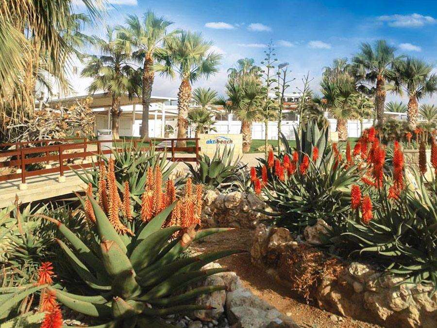 Fekvése: Paphos üdülőövezeti, Chloraka elnevezésű részén, közvetlenül a tengerparton épült, több tucat bungaló épületből álló, 232 szobás „A” kategóriás görögfalu jellegű szálláshely. Az üdülőhely a Coral Bay és a városközpont között található, távol a városi nyüzsgéstől, ugyanakkor csekély távolságra a paphosi kikötőtől és a város legfontosabb turisztikai látványosságaitól. A szálloda körüli partszakasz sziklás, a legközelebbi parányi strand a (kis öböl, lépcsős lejárat a vízben, gumicipő viselése javasolt) közvetlenül a szálláshellyel szemközt, mely a kerten keresztül érhető el. A szállodához szépen gondozott kert is tartozik. Paphos városközpontja és a kikötő kb. 5 km-re fekszik. A térség legszebb strandjai a Coral Bay-en kb. 7 km-re (taxival ~15 euró) találhatók. Buszmegálló a szállodával szemközt van.Az Akti Beach Hotel & Village Resort tökéletes választás családoknak, pároknak, és a nyugalomra vágyóknak, akik szeretnének egy békés környezetben, közvetlenül a tengerparton pihenni, ugyanakkor könnyen elérni Paphos látnivalóit. Foglaljon most!
