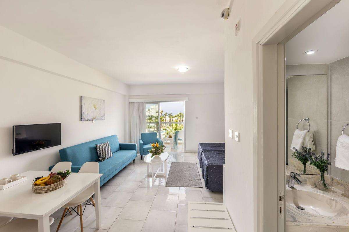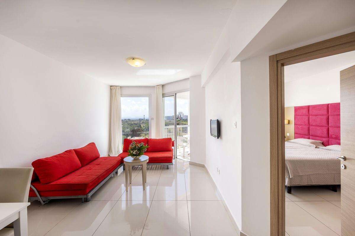 Egy hálószobás apartman: a tágasabb apartmanok külön hálószobával és nappalival rendelkeznek, ahol kényelmes kanapéágy is elhelyezésre került, így akár 4 fő elszállásolására is alkalmasak. A nappaliban található teljesen felszerelt konyhasarok, étkezőasztal, légkondicionáló, TV, telefon, valamint erkély vagy terasz. Ezek a szobák kiváló választást jelentenek családoknak vagy baráti társaságoknak, akik nagyobb térre vágynak a nyaralás során.