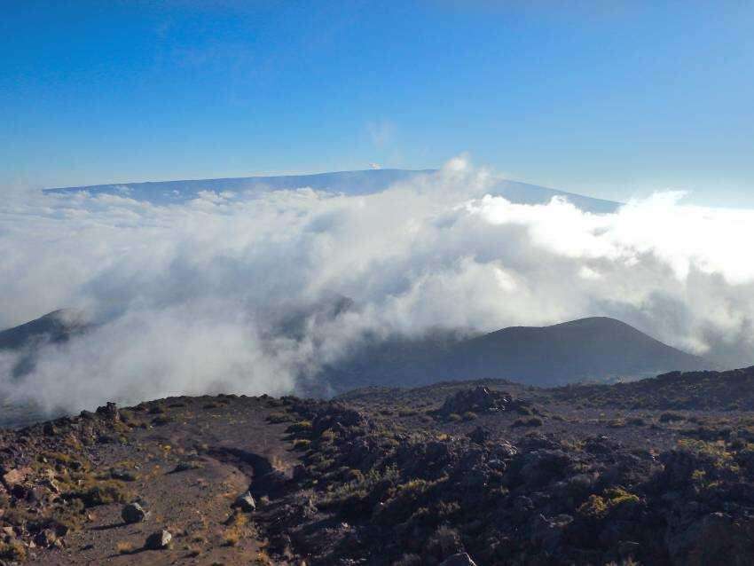 B) Túra 3.000 méter feletti magasságban, Polinézia tetejének növénytelen környezetében. A sokszor hófödte Mauna Kea oldalát „nem evilági”, vöröses és fekete parazita kráterek borítják. A fő csúcsra vezető Mauna Kea Access Road mellett kanyarog felfelé az „elborzasztóan festői” Mauna Kea Humu’Ula ösvény. Séta felfelé a marsbéli környezetben, erőnktől és közérzetünktől függően. A legtávolabbi elérhető pont a Very Long Baseline Array óriás rádióteleszkóp. Az 1000út zászló kitűzése az egyik parazita kráteren, csoportkép készítéssel, majd a Maona Loa (4.170 méter) óriásvulkán panorámáinak fotózása, megfelelő látási viszonyok esetén. Visszatérés Konába a késő esti órákban.