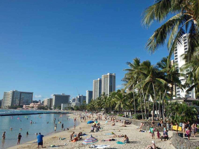 Elutazás menetrend szerinti járatokkal, több átszállással az Egyesült Államokba, Oahu szigetére, Honoluluba. Útközben rövid áttekintés a 132 szigetből (8 nagyobb, állandóan lakott sziget) álló, 16 700 km2 területű trópusi szigetcsoport természetföldrajzáról. Az időzónák átlépésének köszönhetően megérkezés a késő esti órákban, majd transzfer a Waikiki Beachen található négycsillagos szállodába. 4 éjszaka szállás Waikikin.