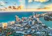 utazás menetrend szerinti repülőjáratokkal, átszállással Budapest – New York, New York - Miami és Miami – Budapest útvonalon, turista osztályon, 1 db feladott poggyásszal, a körutazás alatt légkondicionált autóbusszal