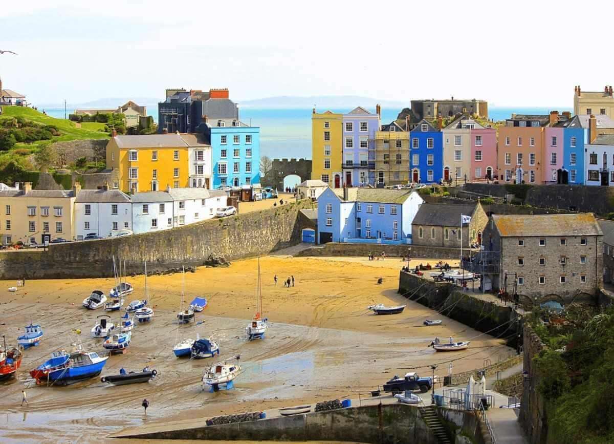 Reggeli után utazás a Wales Partvidék Útvonalon az Egyesült Királyság legkisebb városába, St. Davids-be. Látogatás a Katedrálisban, az ókelta keresztnél, majd a középkori város ódon utcácskáin. Pembrokeshire az “óceán megyéje”. Egyetlen pontja sincs 16 km-nél távolabb az óceántól, teljes területét körbeöleli a Pembrokeshire Nemzeti Park festői óceánpartja. Kiadós séta a White Sand Beach partjain. Késő délutáni érkezés Milford Haven néhai bálnavadász és halász kikötőjébe.