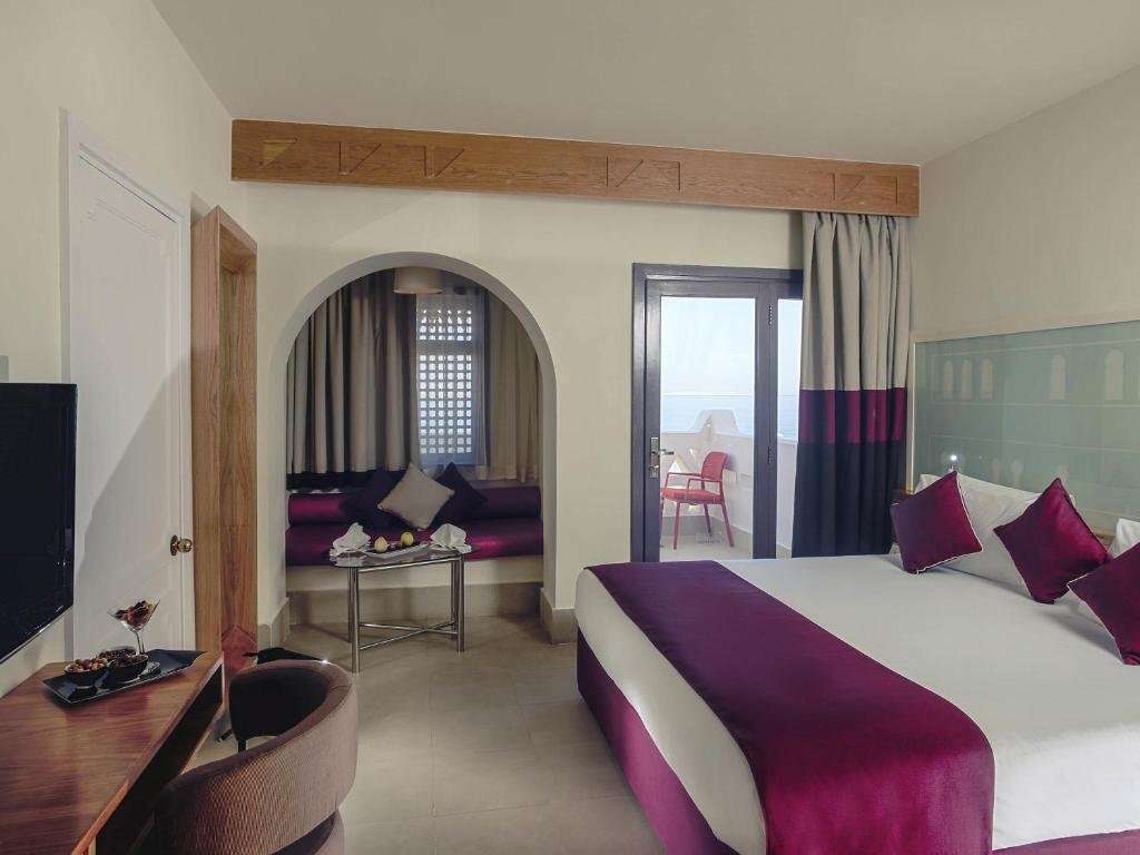 SZOBÁK: A Mercure Hurghada minden szobája erkéllyel vagy terasszal rendelkezik, ahonnan a Vörös-tengerre vagy a szálloda kertjére nyílik kilátás. A szobák jól felszereltek, és számos kényelmi szolgáltatást kínálnak: Kábel TV, Minibár (külön díj ellenében), Ingyenes Wi-Fi a szobákban, Fürdőszoba fürdőkáddal vagy zuhanyzóval,Széf az értéktárgyak biztonságos tárolásához, kávé/tea készítési lehetőség is biztosítva van, vízforraló .Kétágyas szoba kertre néző kilátással (22 m²) (DZG ), Kétágyas szoba medencére néző kilátással (DPZ), Kétágyas szoba tengerre néző kilátással (DZM) , Kétágyas Superior szoba kertre néző kilátással (DSG) 48 m² , Kétágyas Superior szoba medencére néző kilátással ( DSP), Kertre néző családi szoba (FG3) , medencére néző családi szoba (F2P) 48 m² kétlégteres, ajtóval elválasztott családi szobák maximum 5 fő elhelyezésére alkalmasak. Egy db franciaágy van benne és a másik szobában gyakran emeleteságy a gyerekeknek.