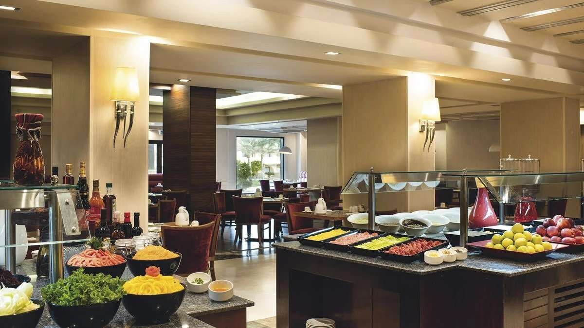 A főétterem büféjellegű ételekkel és nemzetközi konyhával várja a vendégeket, ahol elérhetők etetőszékek a gyermekek számára, valamint gyerekmenü és vegetáriánus ételek is. Emellett két à la carte étterem is rendelkezésre áll: az Al Jazeera, amely libanoni specialitásokat kínál, valamint az Il Pesce, amely olasz ételekkel és tengeri herkentyűkkel csábít.