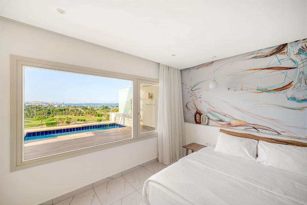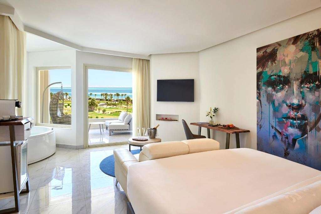 Golf House Suite (SU): A teljesen fehér, elegáns lakosztályok a hatalmas zöld golfpályákra néznek, részleges kilátással a Vörös-tengerre.