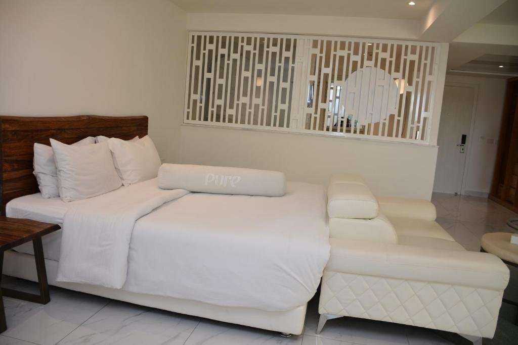 SZOBÁK: A Steigenberger Pure Lifestyle 135 PURE Suites-et kínál, három érzéki kategóriában: Jacuzzi Suites, Swim-up Suites és Penthouse Suites. A lakosztályok többsége tengerparti kilátást kínál. A legtöbb lakosztályban található egy páros jacuzzi, erkély vagy terasz, valamint egy hintaszék; mindegyik lakosztályhoz tartozik egy óriási sík képernyős TV több mint 100 csatornával, eszpresszó gép, media hub, smink tükör, széf és korlátlan, ingyenes, nagy sebességű Wi-Fi.