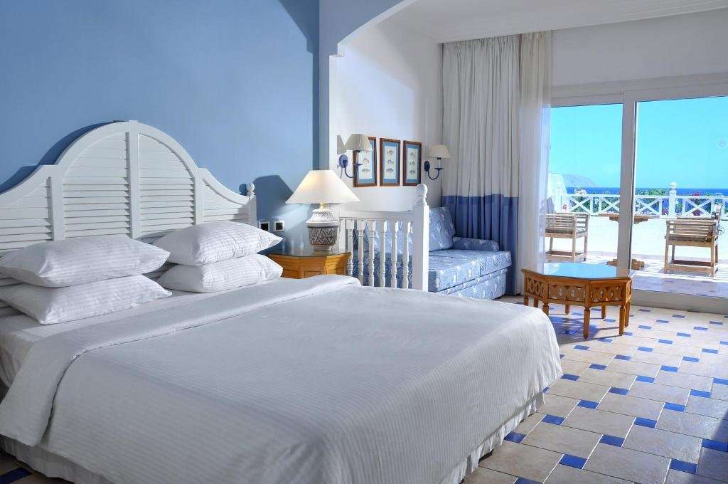 Az elegáns szállodakomplexum közvetlenül a saját privát strandján, egy domboldalon található. Közvetlenül a parttól nem messze található egy korallzátony, amely egy mélyebb vízbe vezető mólón keresztül közelíthető meg (vízicipőt ajánlunk). Na'ama-öböl központja körülbelül 7 km-re, a Sharm El Sheikh repülőtér pedig mintegy 10 km-re található. Ez a tágas üdülőhely 300 szobával és lakosztállyal rendelkezik a főépületben. A szállodában hall, recepció, büféétterem, számos bár, medencebár, kis üzletek és ATM található. A teraszos kültéri terület egy medencekomplexumot foglal magában két édesvizű medencével. A napozóágyak, párnák és napernyők ingyenesen állnak rendelkezésre a napozóteraszon és a strandon. Van egy külső szolgáltató által üzemeltetett igényes wellness-részleg is. A közös helyiségekben ingyenes Wi-Fi áll rendelkezésre.