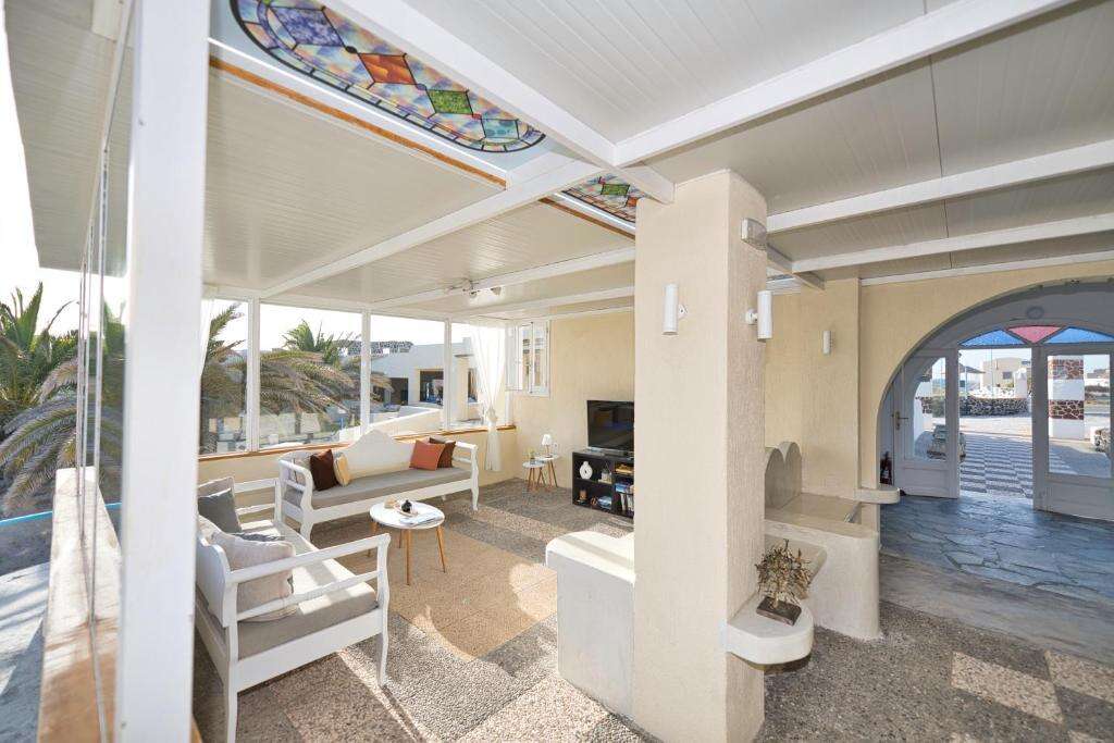 A hotel barátságos, családias légkörben fogadja vendégeit, recepcióval és személyre szabott vendégkiszolgálással. A panorámás teraszon elhelyezkedő medence a szálloda központi eleme, ahol a vendégek kényelmes napágyakon pihenhetnek, miközben a kaldera látványában gyönyörködnek. A medencebár frissítő italokat kínál a nap folyamán, a közös terekben és a szobákban pedig Wi-Fi-hozzáférés biztosított. Igény esetén a recepción segítséget nyújtanak kirándulások, hajóprogramok vagy autóbérlés szervezésében is.