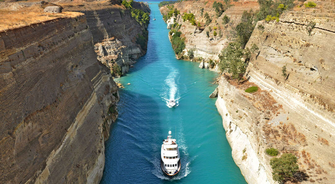 Epidaurosz. Argoliszi körutunk végén a Korinthoszi-csatorna felé vesszük az irányt. Ez egy 6.343 méter hosszú mesterséges vízi út az Égei-tenger és Jón-tenger között, melyet a Korinthoszi-földszoros átvágásával hoztak létre.