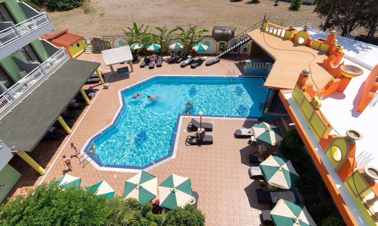 A szálloda egy barátságos, helyi hangulatú mellékutcában fekszik, a legközelebbi strand kb. 350 m-re érhető el. A környéken számos taverna, bár, vízisport-lehetőség, autó- és motorkölcsönző, valamint buszmegálló található, ahonnan Rodosz városa könnyen megközelíthető.