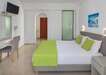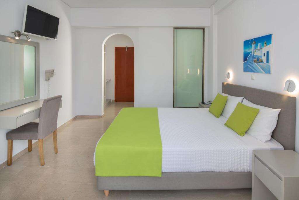 A szálloda légkondicionált, világos, mediterrán stílusban berendezett szobákat kínál, amelyek mind saját fürdőszobával rendelkeznek. Minden szobában található televízió, hűtőszekrény és ingyenes Wi‑Fi-hozzáférés, továbbá a legtöbb szobához erkéllyel vagy terasszal rendelkező kültéri tér tartozik, ahonnan részleges vagy teljes kilátás nyílhat a tengerre vagy a környező tájra. A szobák elrendezése lehetővé teszi párok, családok vagy baráti társaságok számára is a kényelmes elhelyezést.