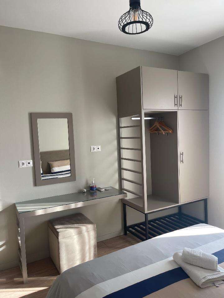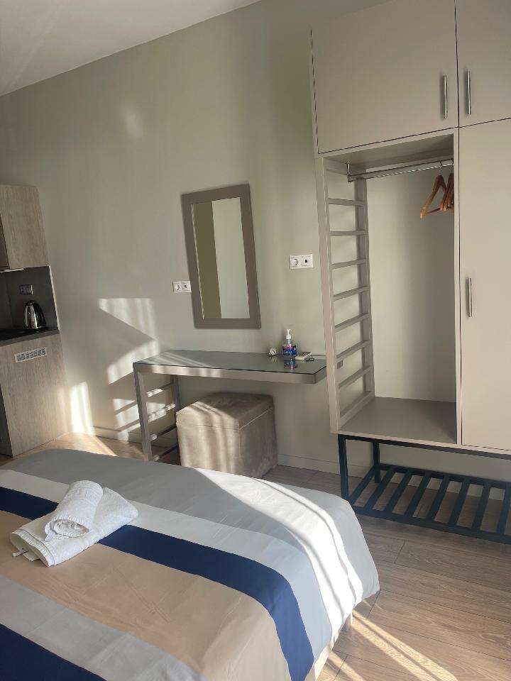 A 2 szintes apartmanházban földszinti és emeleti, különböző színvonalú, 2-3 fős stúdiókban. A stúdiók frissen festve, új bútorokkal, kényelmes ágyakkal (új matracokkal) várják kedves utasainkat. A lakóegységek mindegyike saját fürdőszobával, konyhasarokkal (vízforraló, mikrohullámú sütő, villany/indukciós főzőlap), balkonnal/terasszal rendelkezik. Légkondicionálás felár ellenében kérhető, WiFi minden stúdióban ingyenes. A tengerre néző stúdiókból csodálatos panoráma nyílik a Jón-tengerre. Economy: a 4 db egyszerűen berendezett, kisebb alapterületű, franciaágyas (140x190 cm) stúdió a földszinten és az emeleten található, az egyes szinteken nem egymás mellett helyezkednek el. Az emeleti stúdiók oldalról tengerre nézőek (felár ellenében). Standard: 5 db földszinti (pótágyazható), és felár ellenében 5 db tengerre néző emeleti stúdió (csak gyermek részére pótágyazható). Széf felár ellenében kérhető. Superior: szintenként 1-1 felújított stúdió, nagyobb méretű fürdőszoba zuhanykabinnal, minimál stílusú, modern berendezés. Széf felár ellenében.