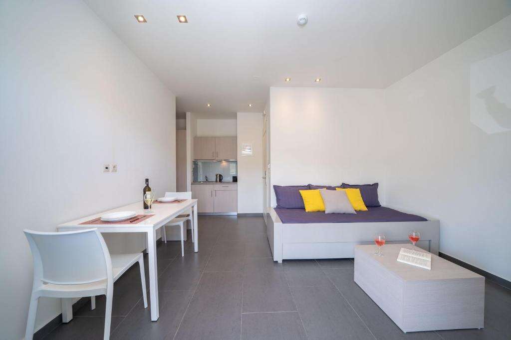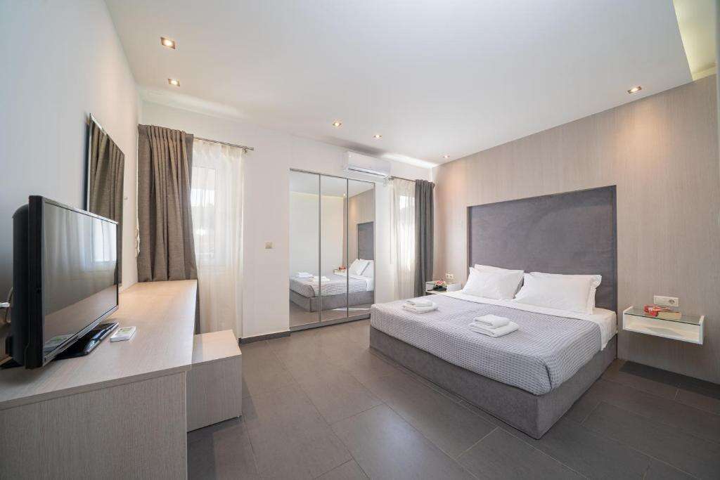 2-3 fős szobákban és 3-4 fős családi luxus apartmanokban. A főhálószobában franciaágy, a nappaliban ággyá alakítható sarokgarnitúra áll rendelkezésre. Apartmanokban felszerelt sarokkonyhához, minihűtő, kenyérpiritó, kávégép,evőeszközők,vízforraló is tartozik. Minden egységhez vasaló, vasalódeszka, telefon, TV, WIFI, széf, pipere felszerelés, erkély vagy terasz tartozik.