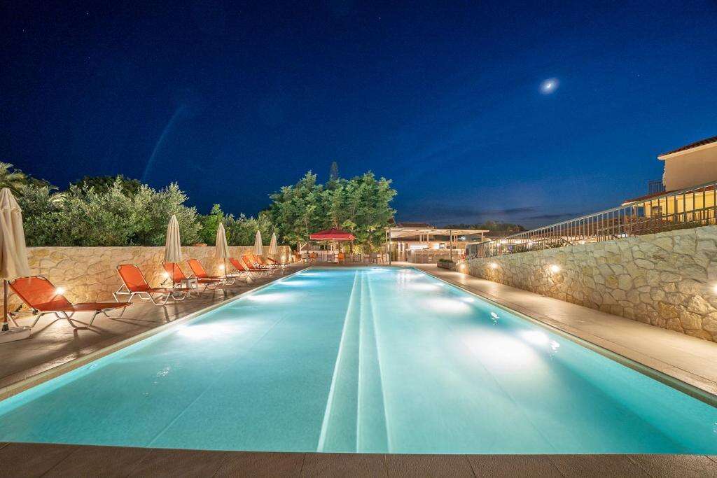A’la carte étterem a komplexum területén, recepció, 2 kinti medence, napozóágyak, napernyők, medencebár, étterem, WiFi, TV, kert, parkoló, autóbérlés, BBQ lehetőség, akadálymentesített közlekedés biztosított.