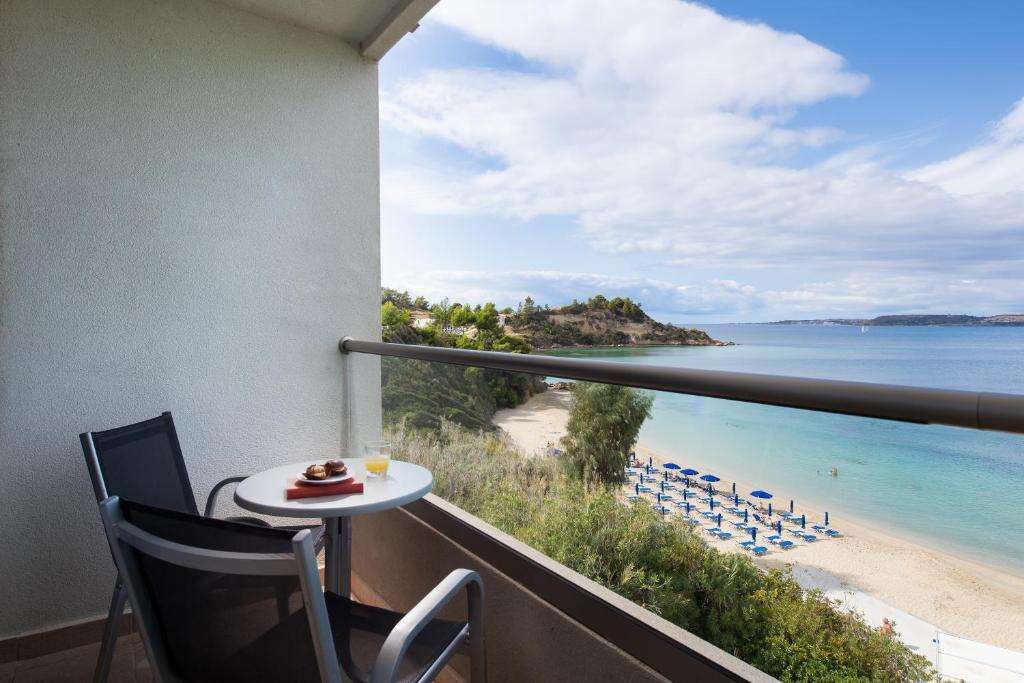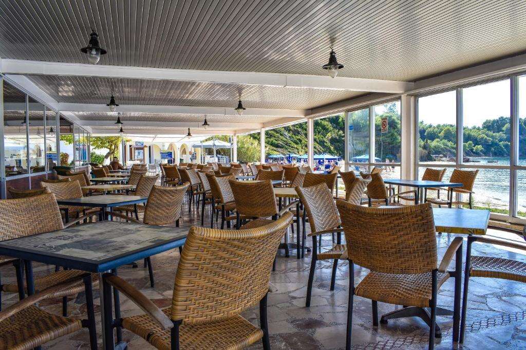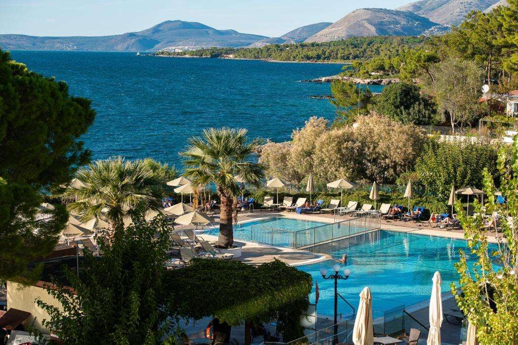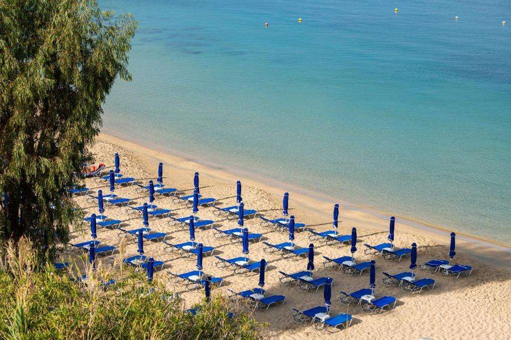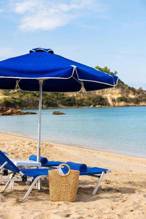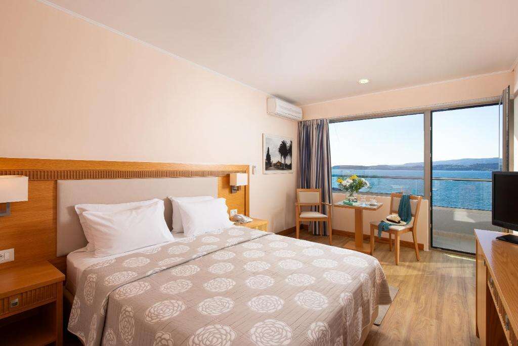 Lassi főutcájától kb. 100 m-re található, közvetlenül a homokos tengerparton (saját strand) fekszik a 226 szobával rendelkező szálloda