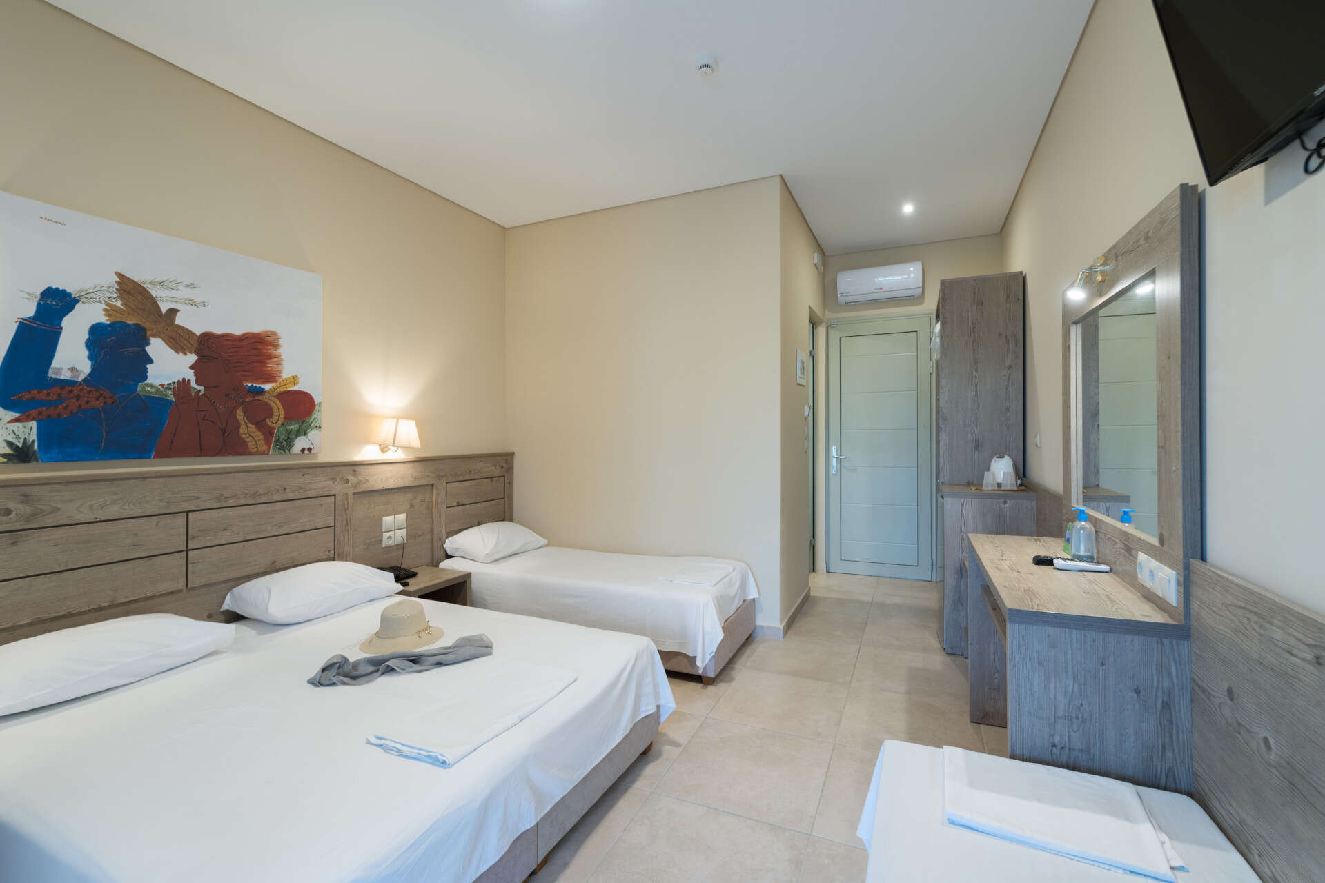• Kényelmes, standard 2 ágyas kertre néző pótágyazható szobákban, amelyek 3 felnőtt vagy 2 felnőtt és 1 gyermek kényelmes elhelyezésére alkalmasak.