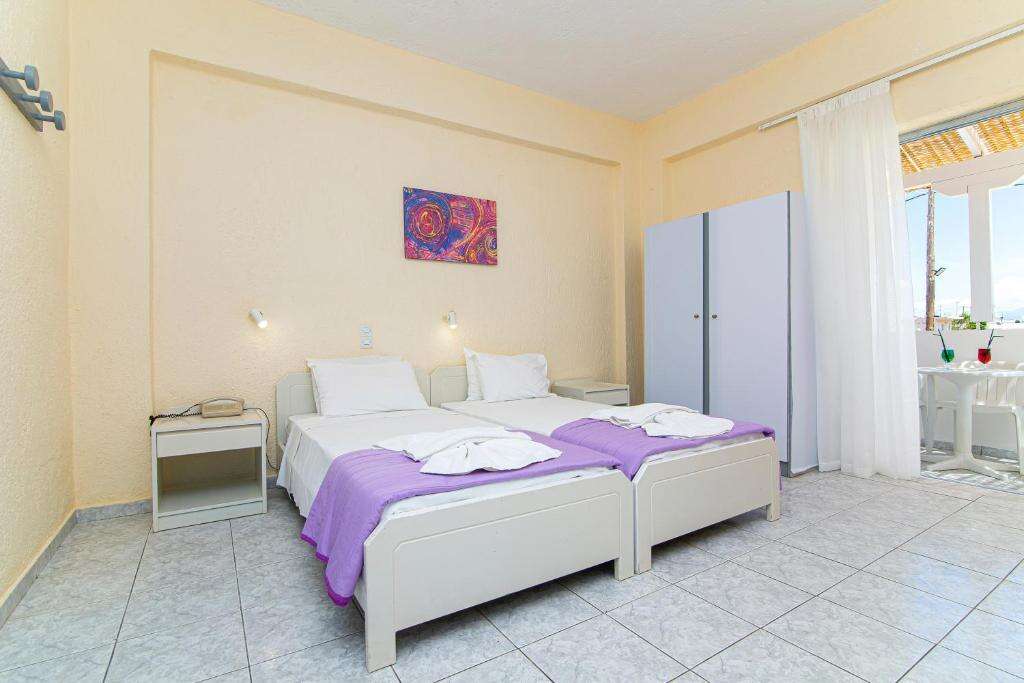 A szálloda egyszerűen, de praktikusan berendezett szobákkal rendelkezik. A standard szobák légkondicionáltak (térítés ellenében), saját fürdőszobával, hajszárítóval, televízióval, telefonnal, hűtőszekrénnyel és bérelhető széffel felszereltek. A szobákhoz erkély vagy terasz tartozik, kilátással a kertre, a környékre vagy részben a tengerre. Családi szobák is rendelkezésre állnak, melyek ideálisak gyermekkel utazók számára.
