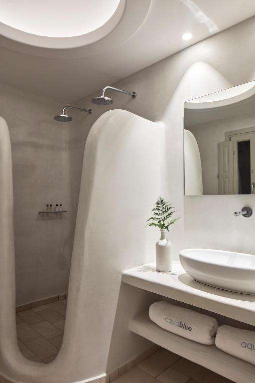 Az Aqua Blue Hotel modern, mediterrán stílusban berendezett, légkondicionált szobákat kínál, amelyek saját fürdőszobával rendelkeznek. A szobák felszereltségéhez televízió, hűtőszekrény vagy minibár, széf és ingyenes Wi-Fi-hozzáférés tartozik. A legtöbb szobához erkély vagy terasz kapcsolódik, ahonnan kilátás nyílhat a tengerre, a medencére vagy a környező hegyvidéki tájra.