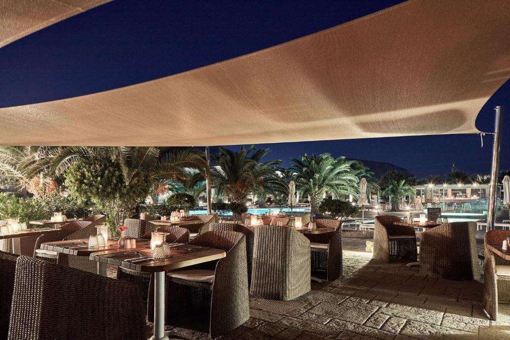 A szálloda reggelis vagy félpanziós ellátással foglalható. A reggelit büférendszerben szolgálják fel, míg félpanzió esetén a vacsora során görög és nemzetközi ételek közül választhatnak a vendégek. A környék tavernái további gasztronómiai élményeket kínálnak.