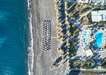 A szálloda Perivolos tengerpartján található, Perissa közelében, közvetlen kijárattal a fekete homokos-kavicsos strandra. A part mentén hangulatos bárok, éttermek és tavernák sorakoznak, így a helyi ízek és esti programok könnyen elérhetők. Santorini fővárosa, Fíra kb. 13 km-re fekszik, míg a Santorini Nemzetközi Repülőtér mintegy 12 km-re található.