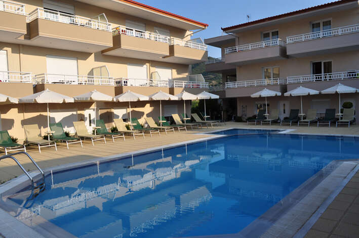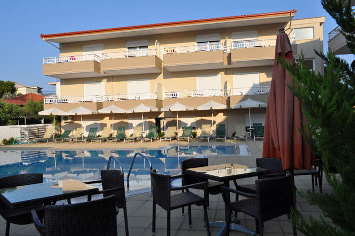 A háromszintes, egész évben üzemelő szállodát gondozott kert veszi körül. Recepció, reggeliző, medence bár, kültéri medence külön gyermekrésszel, valamint napágyakkal és napernyőkkel, saját parkoló áll az itt üdülő vendégek rendelkezésére.