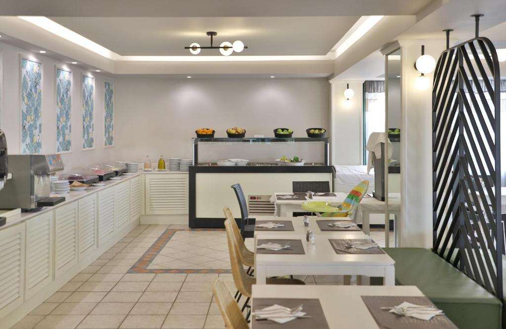 Félpanziós ellátás , amely svédasztalos reggelit és vacsorát foglal magában. A reggeli kínálatában hideg és meleg ételek, pékáruk, gyümölcsök, joghurtok, valamint kávé és tea szerepelnek. A vacsora során nemzetközi és görög specialitásokból válogathatnak a vendégek.