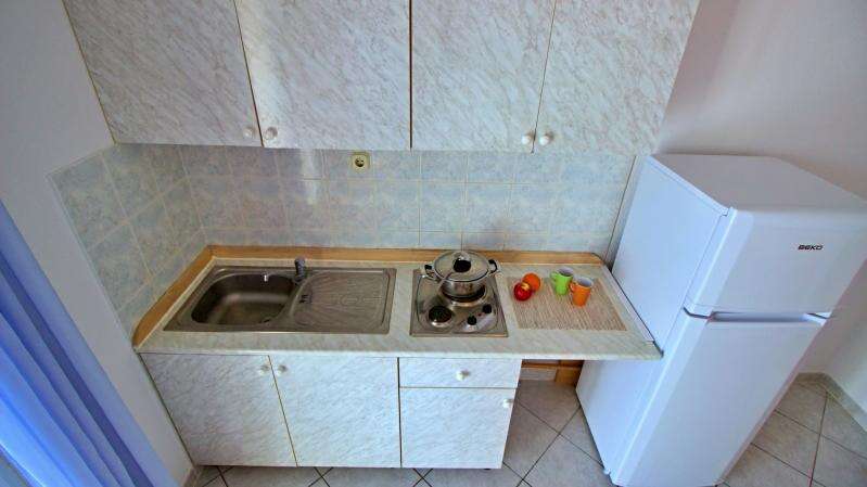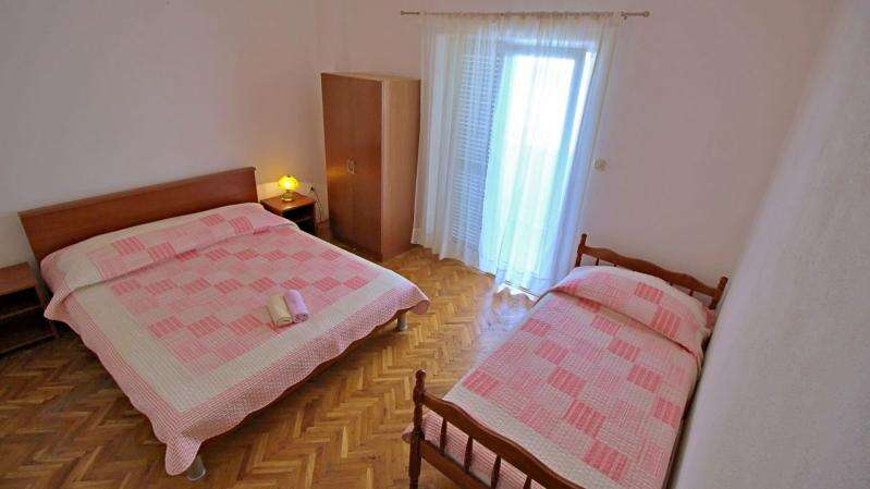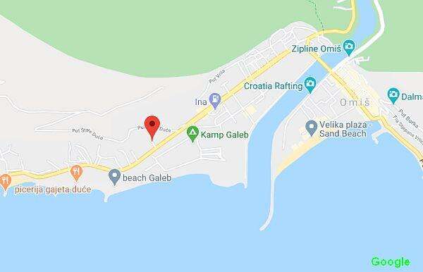 Fekvése: Omis és Duce határán, kb 900 m-re a város központtól, 350 m-re a lassan mélyülő, homokos strandtól, kisebb emelkedőn, a tengerparti út fölött található apartmanház.