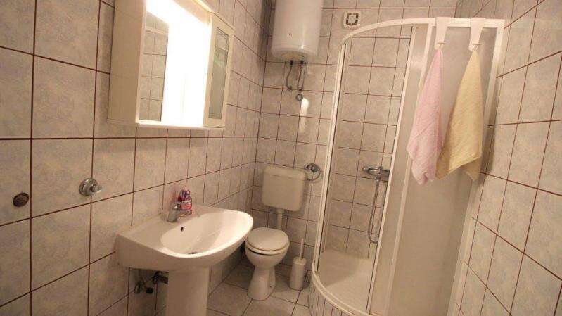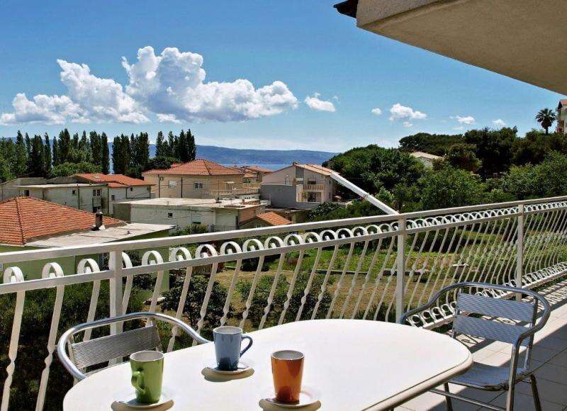 Fekvése: Omis és Duce határán, kb 900 m-re a város központtól, 350 m-re a lassan mélyülő, homokos strandtól, kisebb emelkedőn, a tengerparti út fölött található apartmanház.
