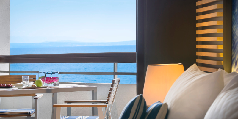 Premium: 2 ágy, fürdőszoba hajszárítóval, telefon, LCD TV, minibár, klíma, széf, ingyenes WiFi, tengerre néző erkély, közös napozóterasz pezsgőfürdővel.