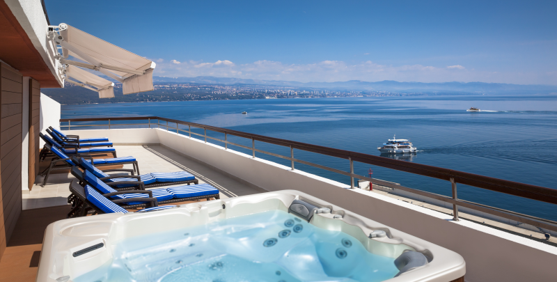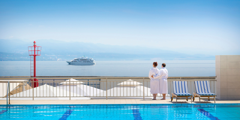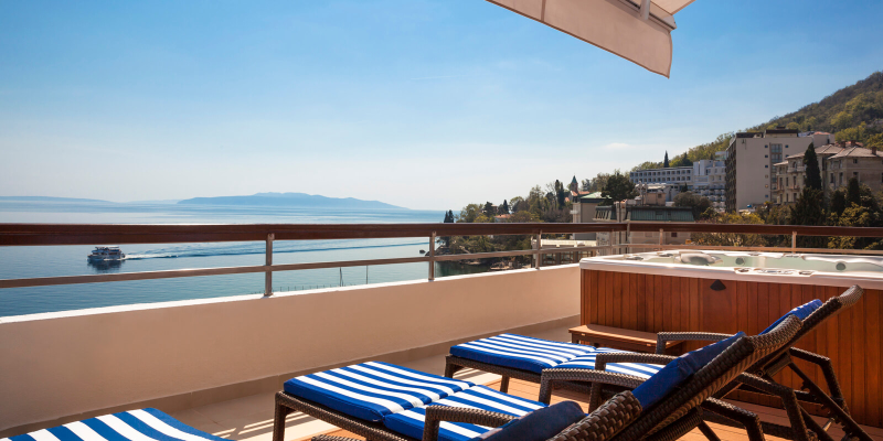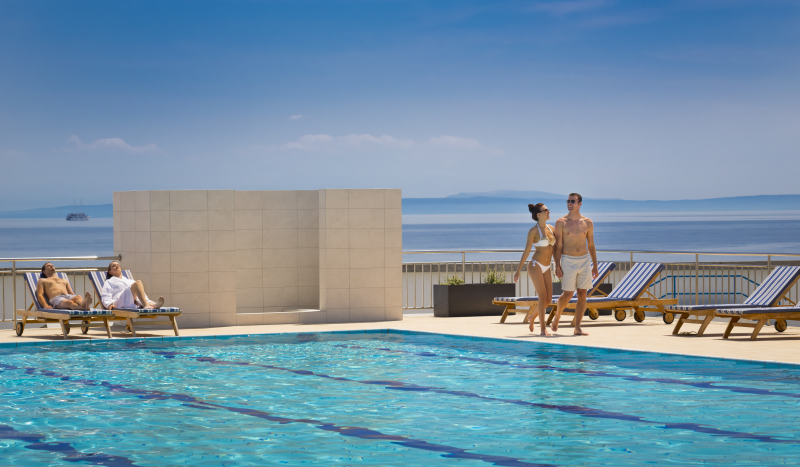 Opatija központjától 300 m-re, a tengerparti sétány mentén, a napozórészekkel kiépített betonos, zuhanyzókkal, napozóágyakkal és napernyőkkel felszerelt strandon található, ez az igényes, tengerre néző szobákkal rendelkező szálloda.