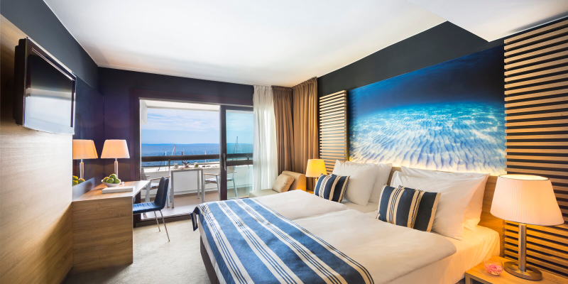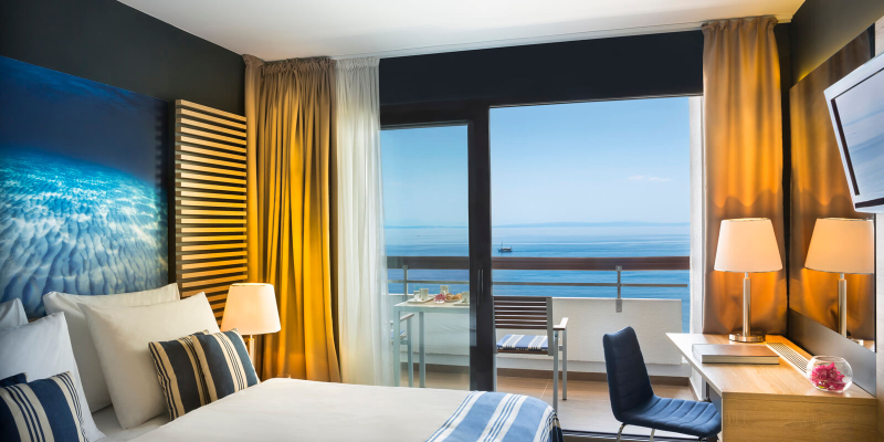 Superior: 2 ágy (pótágyazható/ fotelágy), fürdőszoba hajszárítóval, telefon, LCD TV, minibár, klíma, széf, ingyenes WiFi, tengerre néző erkély.