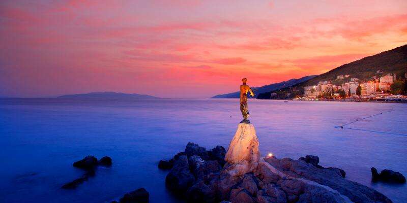 Indulás reggel 06.00 órakor Budapestről. Kora délutáni órákban érkezés a csodaszép Opatijaba, patinás villáival, épületeivel, parkjaival és utcáival ejt rabul mindenkit. Városnézés előtt szállás foglalás és idegenvezetőnk bemutatja a helyi látnivalókat: Angelina és Amerikai parkot, Opatija szimbólumát ("Lány sirállyal" szobor), majd szabadidő, mely keretében bebarangolhatja a várost.