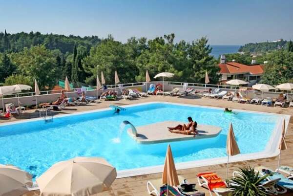 Fekvése: Porec óvárosától 5 km-re, Zelena Laguna Resort üdülőtelepen, kisebb dombon, a kavicsos és kiépített tengerparttól 100 m-re található ez az elegáns all inclusive szálloda.