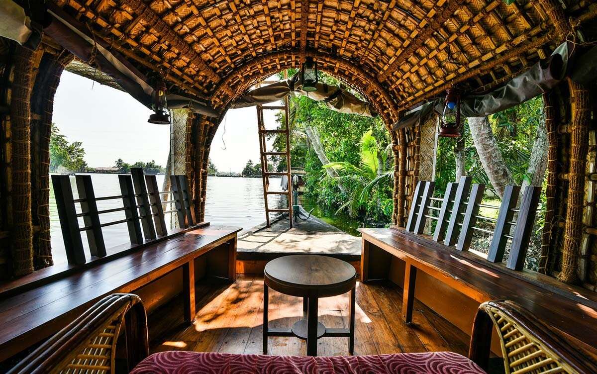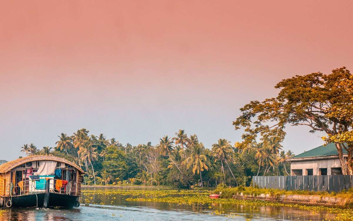 - Utazás Kerala szívébe, ahol az egymásba hajló pálmafák a lagúnák vízében tükröződnek.