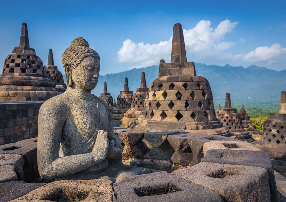 4. napEzen a napon Jáva sziget kiemelkedő látnivalóival ismerkedhetnek meg, melyek méltán tartanak az UNESCO Világörökség részeként számon. Elsőként a Borobudur buddhista templomegyütteshez vezet az út. A IX.században épült többemeletes buddhista sztupa a szigetvilág legnagyobb kiterjedésű klasszikus építészeti emléke. A többemeletes, némiképp piramisra emlékeztető építménydíszitése szimbólumokkal teli, tetején egy 10 méter átmérőjű üres sztupa áll, amelyet 72 kisebb sztupa vesz körül, amelyek mindegyikében egy-egy Buddha -szobor van. Ebéd egy helyi étteremben, A délután fénypontja Jáva legnagyobb hindu templomegyüttese a Prambanan. A templomegyüttes hat nagyobb templomból és 224 mára már főként romként fellelhető kisebb templomból áll. A három legnagyobb templomot Shivanak, Brahmanak és Vishnunak dedikálták. Mindhárom templom gazdagon díszített, elsősorban a Ramajana eposzból vett motívumokkal. A látogatást követően visszatérés a yogjakartai szálláshelyre, vacsora a szállodában.