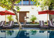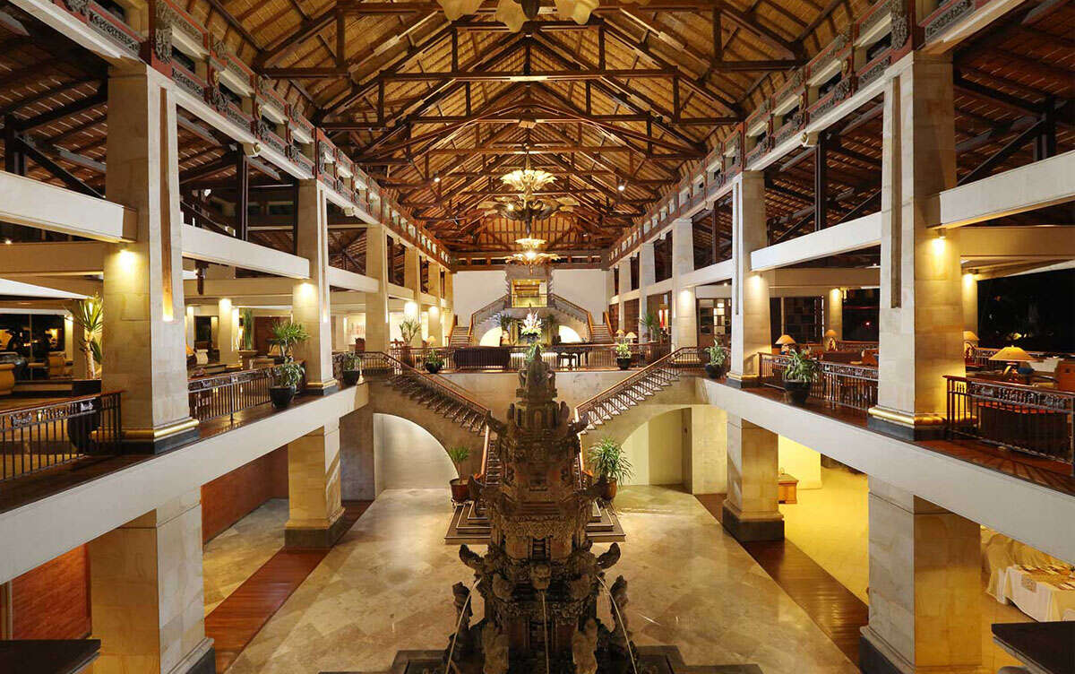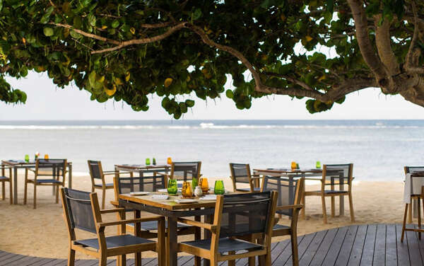 Közvetlen tengerparti, a repülőtér kb. 20 perc autóval, a Bali Collection bevásárlóközpont 800 méter. 9 hektáros trópusi zöld kertjében 3 medence nyújt felfrissülést, 200 méter hosszú homokos strandja pedig néhány lépés csak a kerttől.