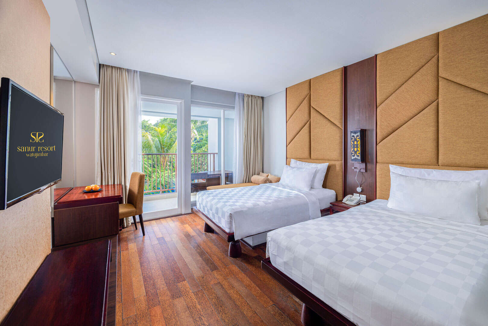 Szobák (deluxe pool view): Kínálatunkban az elegáns és modern balinéz stílusban épült, 32m2 alapterületű, kétágyas deluxe szobák szerepelnek. A szoba teraszáról a szálloda belső kertjében található medencékre nyílik rálátás. A légkondicionált szobákban saját hűtőszekrény, széf és TV teszi kellemesebbé az ottlétünket.