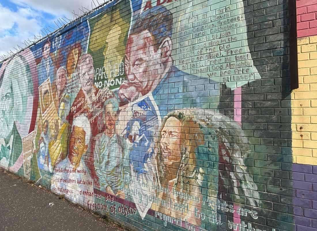Menet közben vázlatos ismertető a Lagan folyó partján 1613-ban alapított, ma 680.000 lakosú, egészen különleges sorsú város múltjának néhány kiemelkedő eseményéről. The Plantation of Ulster kora: A skót (Stuart) I. Jakab király „ültetvényezése”, amikor nagyszámú skót presbiteriánus, francia hugenotta és angol telepes költözött a katolikus írek földjeire. III. (Orániai) Vilmos király kora, majd az Orange Order megalapítás időszakának bemutatása. Végül néhány szemelvény az időkről, amikor Belfast Baltimore és New York legnagyobb cukor és rum ellátójává vált, illetve Földünk legnagyobb hajógyártó központjává nőtt. Pár szó a Harland & Wolf hajógyártó óriáscégről és itt épített óriás hajójáról, az RMS Titanicról.