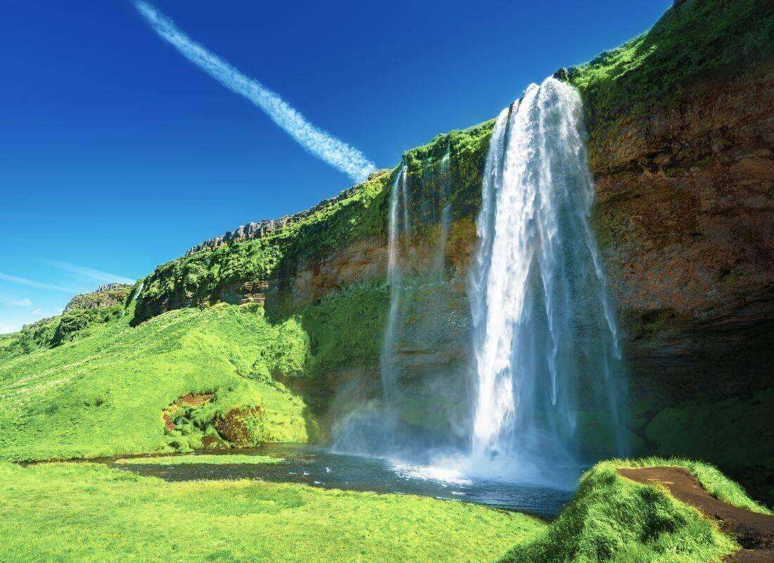 A déli part fő látványosságai közé tartoznak a lélegzetállító vízesések, egyikük a 66 méter magasról lezúduló Seljalandfoss, ahol a vízesés alá is sétálhatunk, emiatt a fotósok egyik kedvence. Izland egyik legnagyobb vízesése a Skógafoss, amely 25 méter széles és 60 méter magas sziklafalról zuhan a mélységbe, napos időben több szivárványt is láthatunk. Séta Vík halászfaluban, ebédelési lehetőség.
