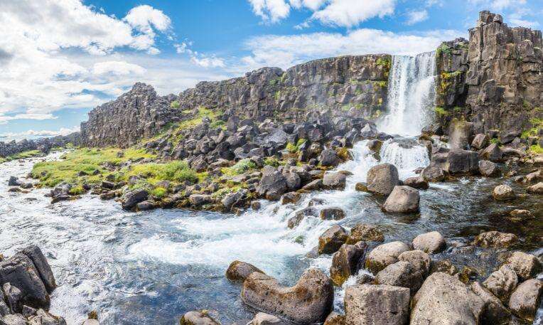 Első megállónk a UNESCO világörökségi helyszín, a Þingvellir Nemzeti Park, amely az észak-amerikai és eurázsiai tektonikus lemezek találkozásánál fekszik. Itt nemcsak a bolygónk dinamikus mozgásait csodálhatjuk meg, hanem Izland történelmi gyökereit is megismerhetjük: itt tartották a vikingek az Althingi nevű törvényhozó gyűlésüket a vadregényes lávamező közepén.