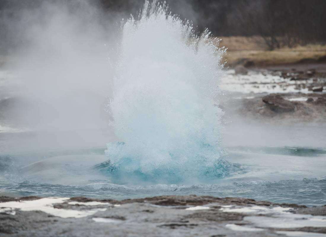 Ezután a nagy Geysir-t nézzük meg, amely a legrégebbi gejzír, melyet írásos emlékek rögzítettek. A kitörése az évszázadok alatt folyamatosan változó volt, előfordult, hogy egyáltalán nem működött. 2000-ben megdöntötte az összes addigi rekordját és az aktív vulkáni működésnek köszönhetően két napig közel 120 méter magasba lövellte ki a forró vizet, maga a gejzír elnevezés is innen származik. A másik nevezetes gejzír, amit itt láthatunk a Strokkur, amely sűrűbben, „menetrend szerint” 6-10 percenként szökőkútként tör a magasba, a vízoszlop akár 40 méter magas is lehet.